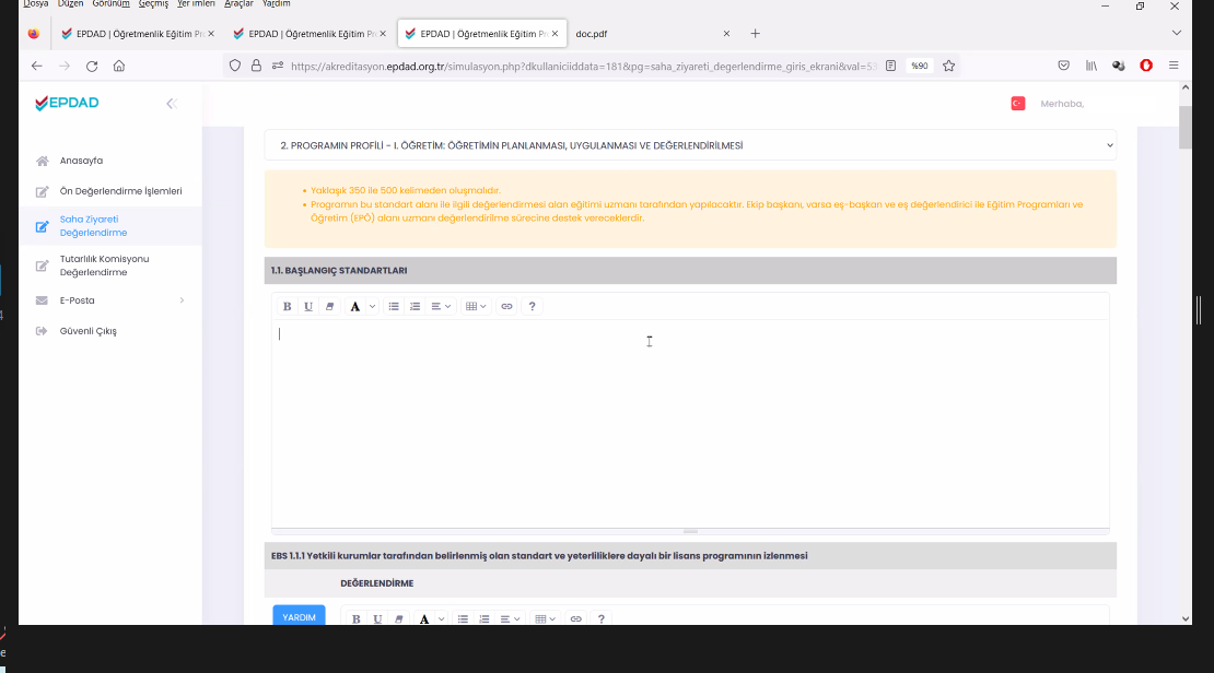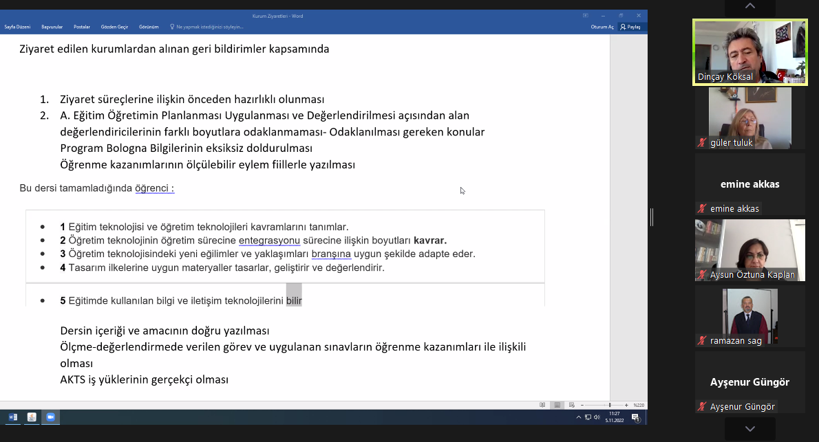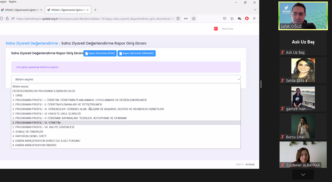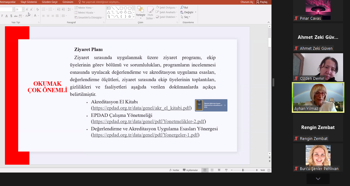 05.11.2022 tarihinde güz dönemi kurum ziyaretlerinde görev alacak değerlendiricilere yönelik bilgilendirme toplantısı gerçekleştirildi. Çevrimiçi ortamda gerçekleştirilen toplantıda EPDAD Yönetim Kurulu Başkanı Prof. Dr. Cemil Öztürk, Başkan Yardımcısı Prof. Dr. Dinçay Köksal, EFAK Üyesi Prof. Dr. Ayhan Yılmaz, ABYS sorumluları Doç. Dr. Şeyhmus Aydoğdu ve Uzm. Şafak Oğuz; EPDAD saha ziyaretlerinde değerlendiricilik görevi, değerlendirme sürecinde yürütülecek çalışmalar, yaşanan sorunlar ve Akreditasyon Bilgi Yönetim Sistemi (ABYS) ile ilgili değerlendiricilere bilgilendirmede bulundular ve soruları yanıtladılar.