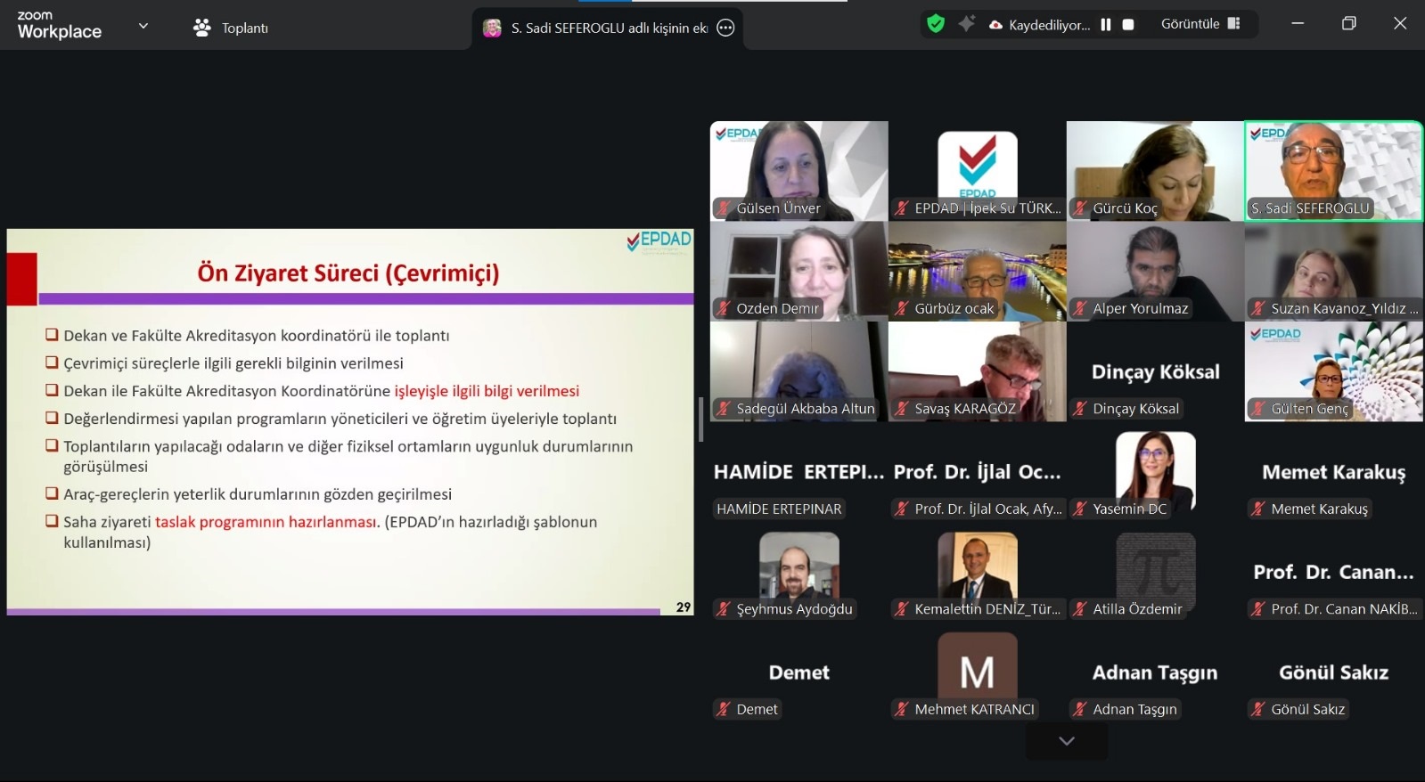5 Kasım Çarşamba günü çevrim içi olarak Ekip Başkanı Bilgilendirme Eğitimi yapıldı. EPDAD Eğitim Komisyonu ve öğrenci değerlendiricilerimizin ortak çalışmasıyla düzenlenen eğitim, Eğitim Komisyonu Başkanı Prof. Dr. Gürcü KOÇ'un moderatörlüğünde Yönetim Kurulu Başkanı Prof. Dr. Dinçay KÖKSAL'ın açılış konuşmasıyla başladı. Sonraki oturumlarda eğiticiler; Prof. Dr. Gürcü KOÇ, Prof. Dr. Hamide ERTEPINAR, Prof. Dr. Hatice Gülru YÜKSEL, Prof. Dr. Gürbüz OCAK, Prof. Dr. Gülsen ÜNVER, Prof. Dr. Sadi SEFEROĞLU, Prof. Dr. Erdal HAMARTA, Prof. Dr. Gülten GENÇ, Doç. Dr. Şeyhmus AYDOĞDU, Doç. Dr. Alper YORULMAZ, Dr. Öğr. Üyesi. Atilla ÖZDEMİR, sunumlarını gerçekleştirdiler. Toplantıda akreditasyon sürecinde dikkat edilmesi gereken genel hususlar ve hatırlatmalar, saha ziyareti süreci ve programı, ABYS Modülü tanıtımı, standart alanlara ilişkin bilgilendirmeler, görev, sorumluluklar ve etik konularına yer verildi.
